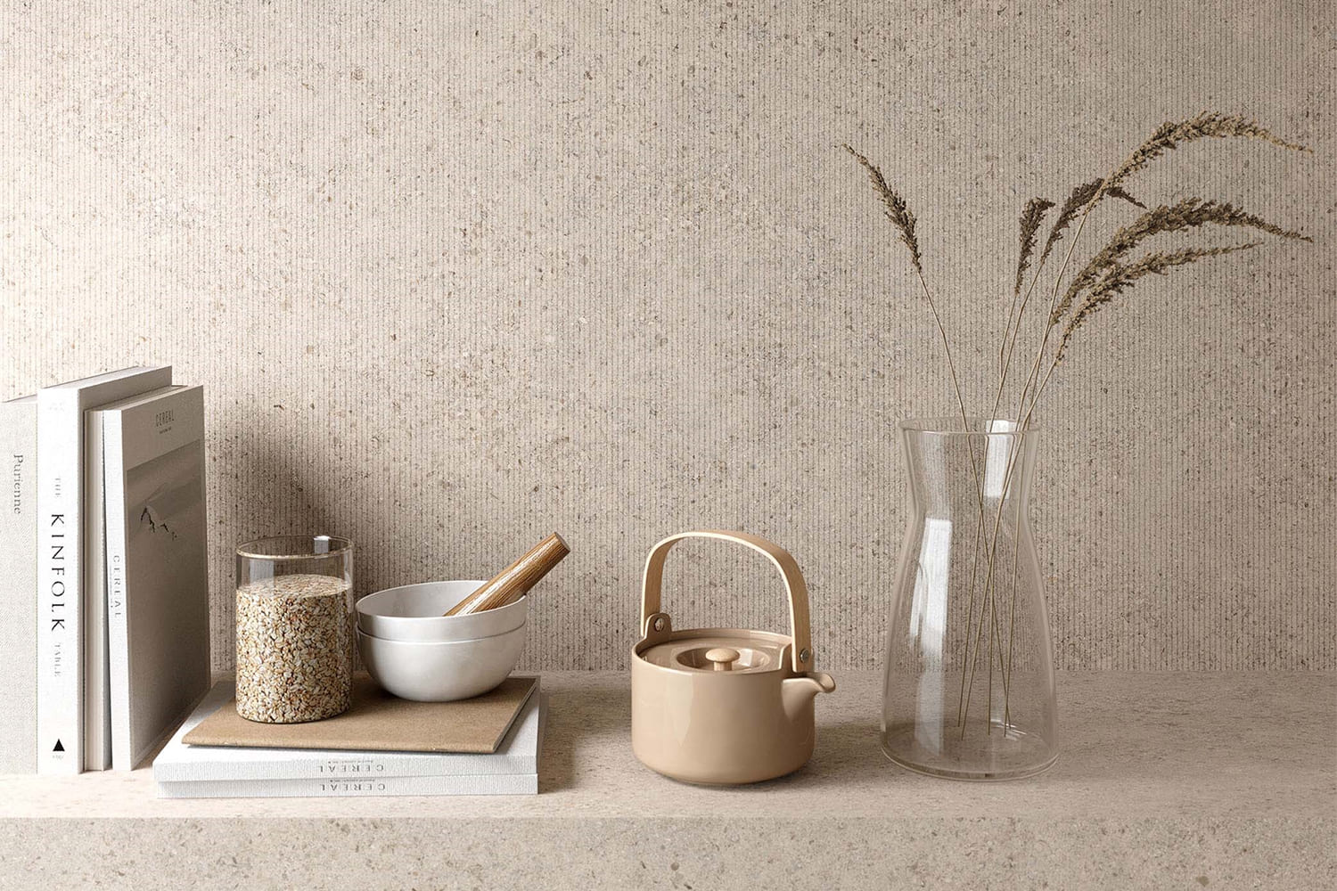 Calcario Collection Line Matte Grey Beige Porcelain Tile 120x280
