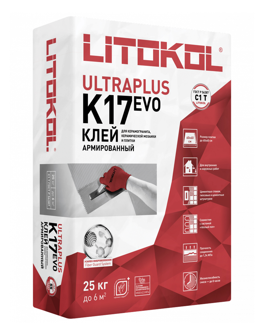 Клей фиброармированный тиксотропный для керамической плитки и керамогранита до 60х60 см.